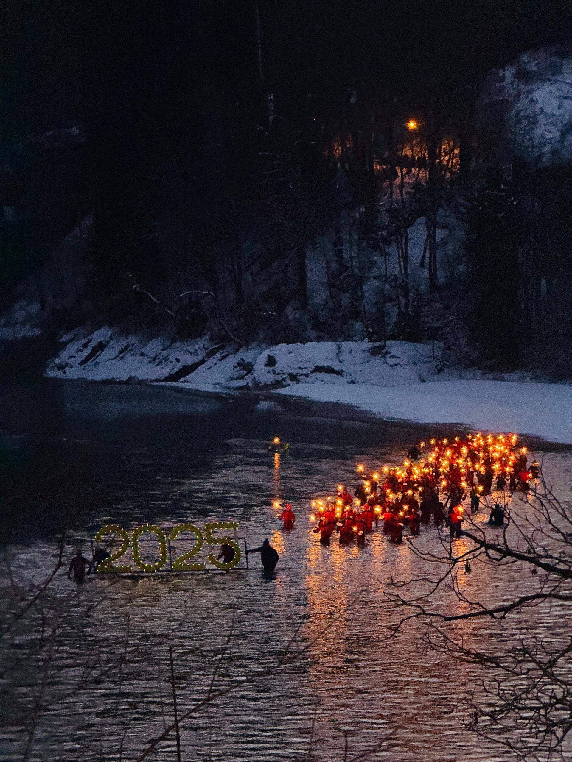 Fackeln machten das Neujahrsschwimmen zu einer besonderen Attraktion!
